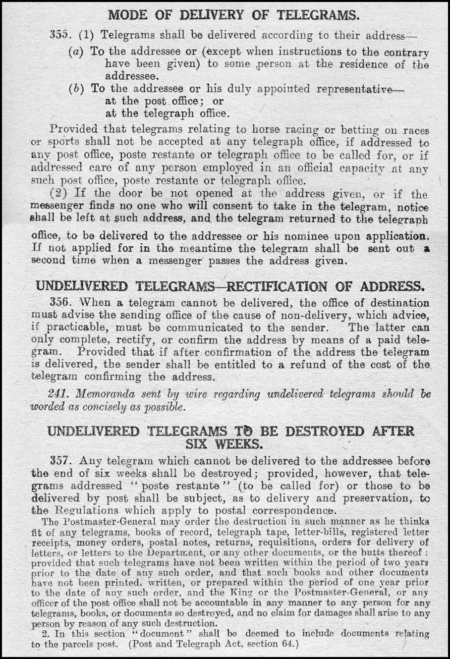 Regulations for delivery of telegrams.