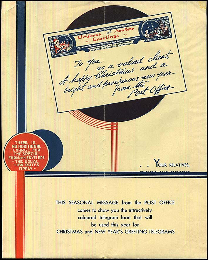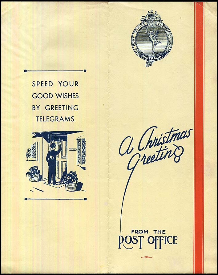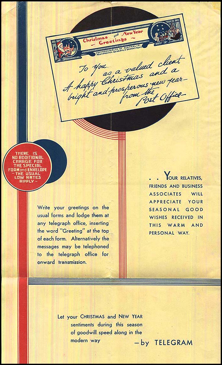 | Lower section of the inside page when folded: | Advertising beginning with THIS SEASONAL MESSAGE ... |
