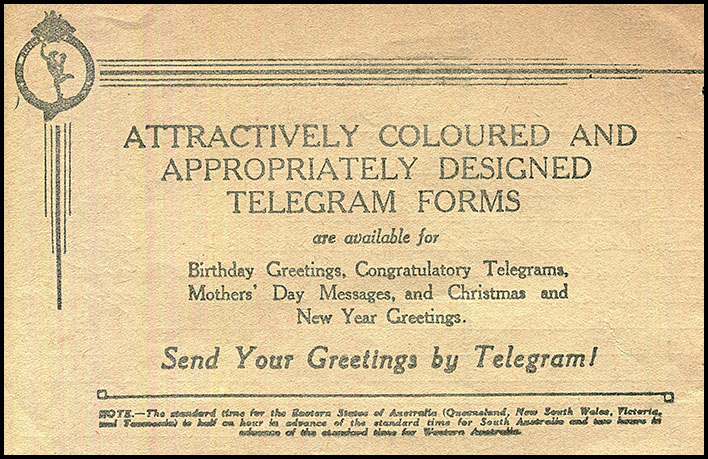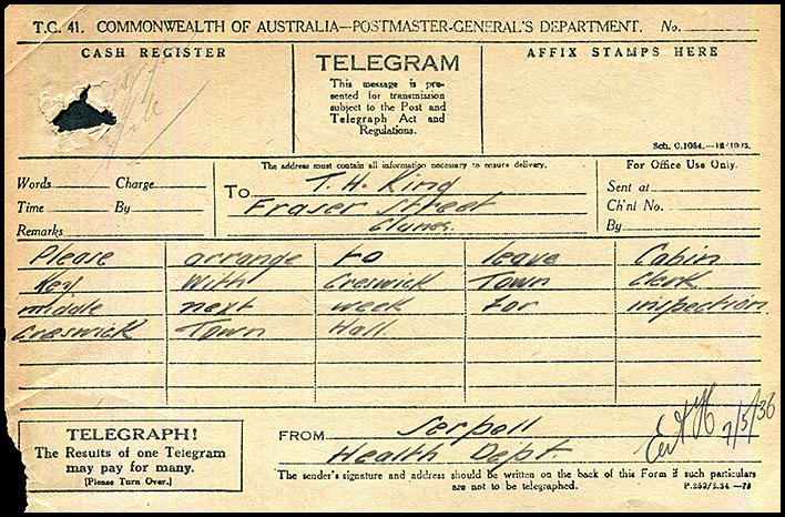 8 November 1933 - copy of a lettergram to Melbourne. |