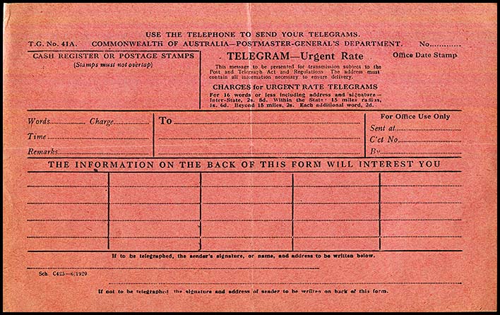 Heading and notes: | Form Number E.T. No. 41a. TELEGRAM - URGENT RATE in one line. Four boxed sections. |