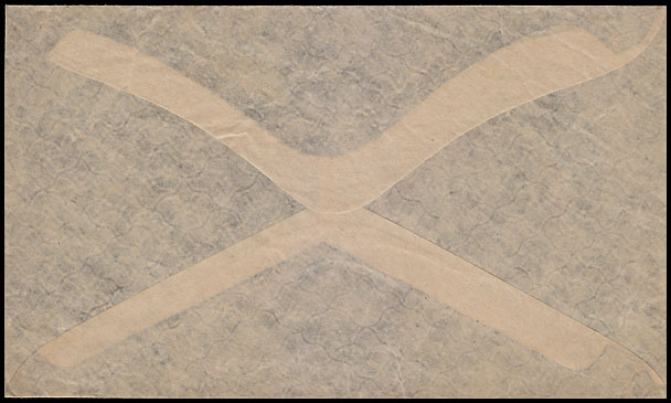 Reverse side of the above delivery envelope showing the shape of the flap and the colour of the security pattern showing through. |