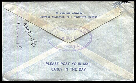 The other used envelope was also used at Exmouth but dated