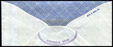 8 July 1969 no identifiable Office but envelope has a large habdstamp " A CARD WAS LEFT ....". C