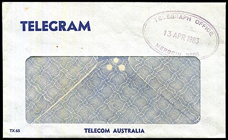 • TELEGRAM in thinner sans serif letters 5.8 mm high and printed lower;