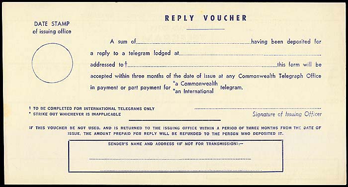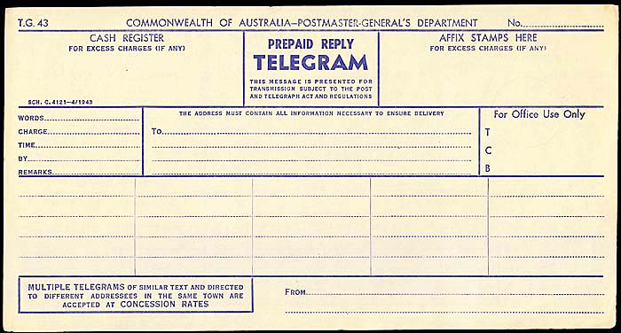 Reply paid telegram transmission form: AW-RO-9