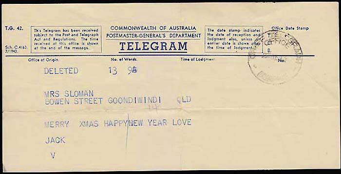 Winnap to Victoria Barracks, Melbourne (?? 1944).