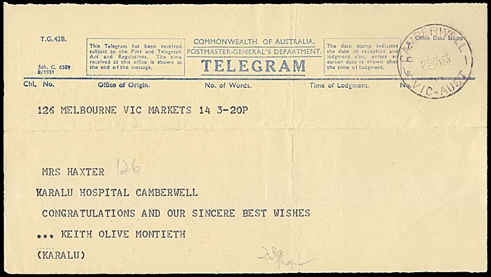 10B (51) | Sch. C. 6589 8/1951. | 16 October 1952 at Telegraph Office Oxford Street, NSW. |