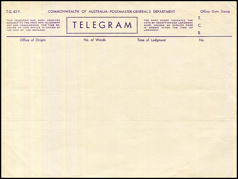 | Heading and notes: | Form No. T. G. 42Y COMMONWEALTH OF AUSTRALIA. |