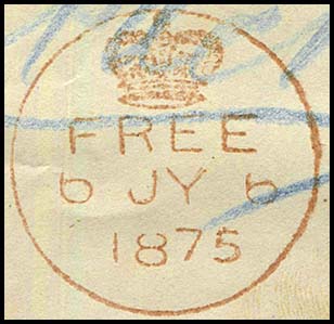 The Frank Stamp shows the letter was sent on 6 July 1875. |