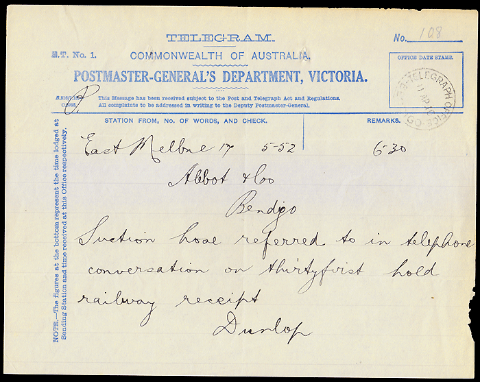 | C. 6149 | 16 December 1912 at Telegraph Office Bendigo. | NC | |