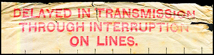Arrival in London: 8 November 1877. Delivery form for a message sent from Sydney on 4 November. Only example of this form known for a message from Australia and a very rare use of the DELAYED hand stamp The Report of the Proceedings of the May Conference respecting the Duplication of the Telegraph Lines between Australasia and Europe, Appendix 4 (p. 48) notes that the line between Port Darwin and Banjoewangie was interrupted between November 4 and November 15, 1877. |