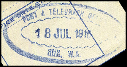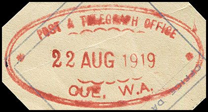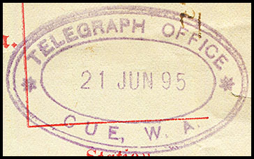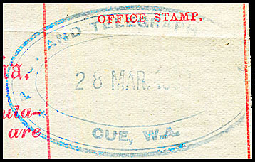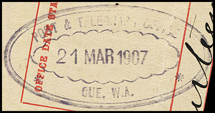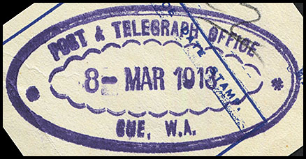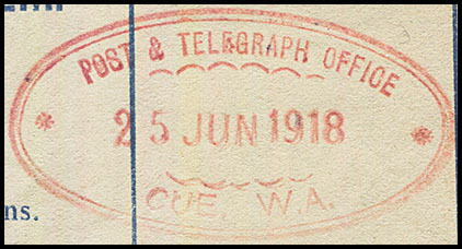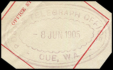 Other listings of Cue oval date stamps list three formats. The formats were RO2, RO6 and RO7. The following analysis extends these previous classifications to eight distinct types. There were two different inscriptions at the top - either TELEGRAPH OFFICE or POST AND TELEGRAPH OFFICE (with variations). There were also the three different formats for the ovals.