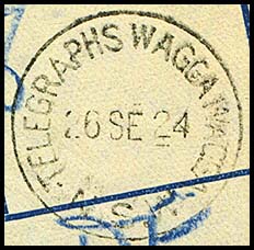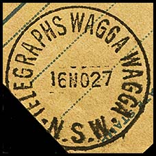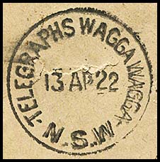 Two formats of a TELEGRAPHS WAGGA WAGGA date stamp were used. |