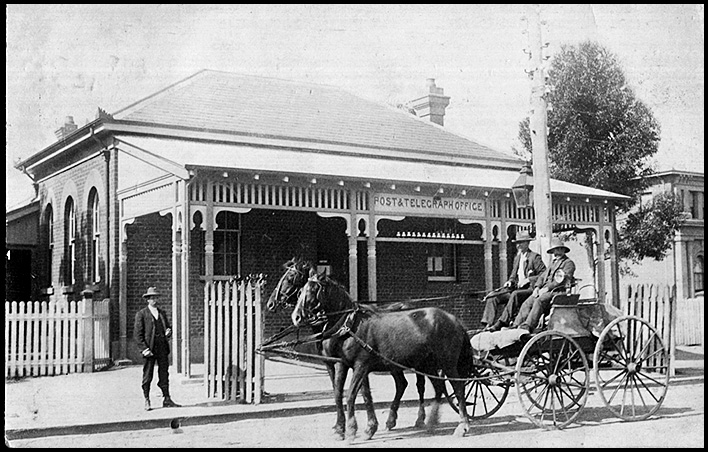 The Telegraph Office opened on 8 August 1882 at least at the Railway Station. Personnel: In December 1889, Mr. William Newton was Telegraph Master. |