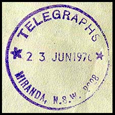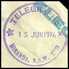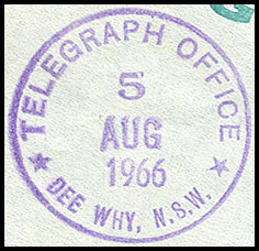 No special date stamps for use with telegraphic work were issued to Woollhara. Instead the postal date stamp was used with telegraphic work.