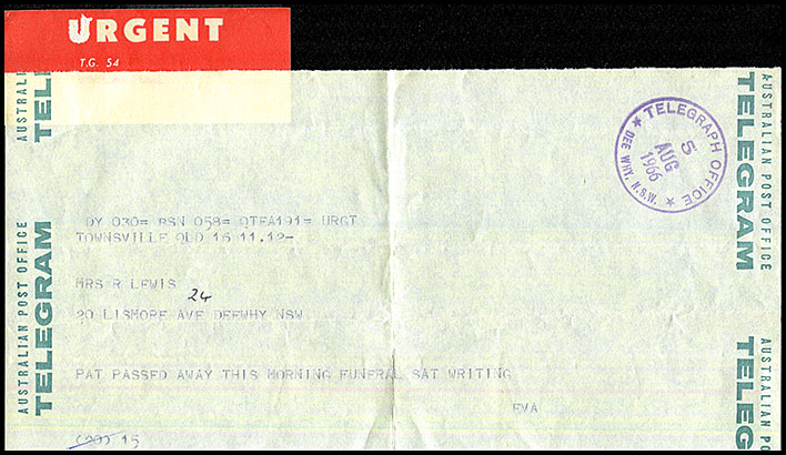 No special date stamp for use with telegraphic work at Redfern is recorded.
