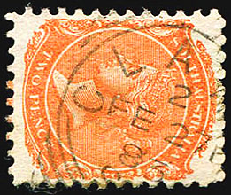 ![]() 27 February 1883. Used on 2d orange De La Rue. Phoenix Auctions. |