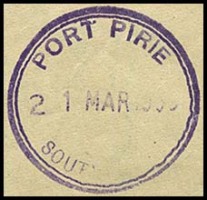 No special date stamp for use with telegraphic work was ever issued to the Port Pirie office. |
