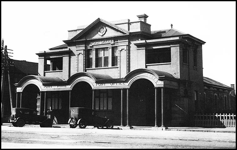Saddleworth was on the Roseworthy - Peterborough railway line which reached the town in 1870. Hence a Telegraph Office was opened at the Railway Station on 18 January 1870. The Telegraph Office in town opened on 7 June 1877.