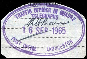 Used on telegrams: 22 January 1948 - 4 March 1953.