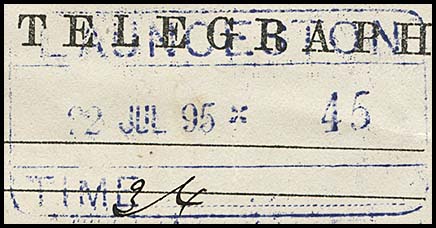 Unframed date stamp were used at Brighton for telegram work. The only examples known were all used on unofficial (or ad hoc) telegram forms - cut from ordinary writing pages or by tearing usual telegraph forms into two pieces.