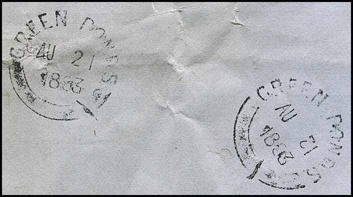 Two Green Ponds date stamps for 21 August 1883 on the reverse side of a TC-TO-3E transmission form.