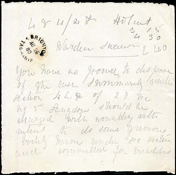 The earliest indications of the operation of the Telegraph Office at Pontville are a message from Hobart on 19 June 1871 (see below) and 11 July 187 . The latter message (shown immediately below) is an ad hoc  (transmission(?)) form written on plain light blue paper for a telegram probably sent from Pontville (to Hobart?) on 11 July 1871. The cost of this message was 2/3 for the 25 words1 shilling for the first 10 words and 1d for each extra word