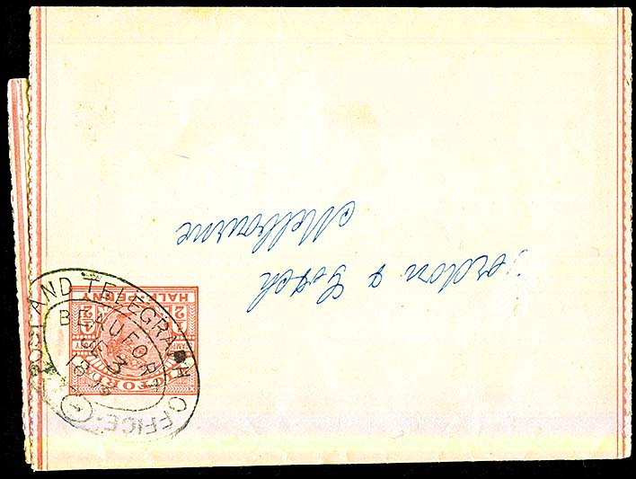 | Wabdallah. The Telegraph Office opened in May 1873. The Post Office was opened on No special date stamps were used for telegrams. |