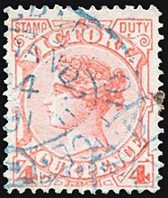 Cancelled by two strikes of complete Yakandah 1 hole Belt & Buckle date stamps in black - first complete strikes seen.