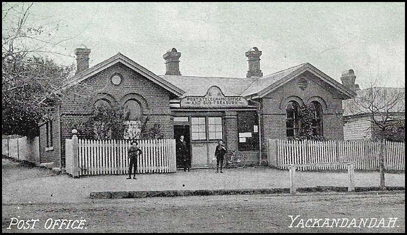 The Gazette of February 1885 recorded that the tender for the construction of the Post and Telegraph office including fencing at Wandiligong had been let to Robert Hedge for £820.
