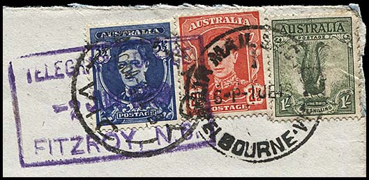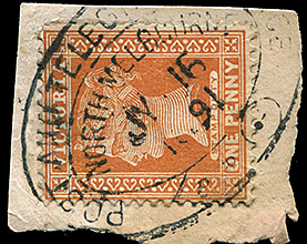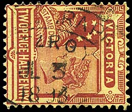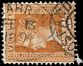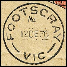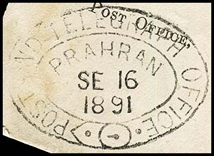 | 1 hole Belt & Buckle complete strike in black on cover - one of only two recorded complete strikes. | ![]() 17 February 1891. Cover to Melbourne from St. Kilda. Prestige Philately Sale 173 (May 2012) Lot 730. |