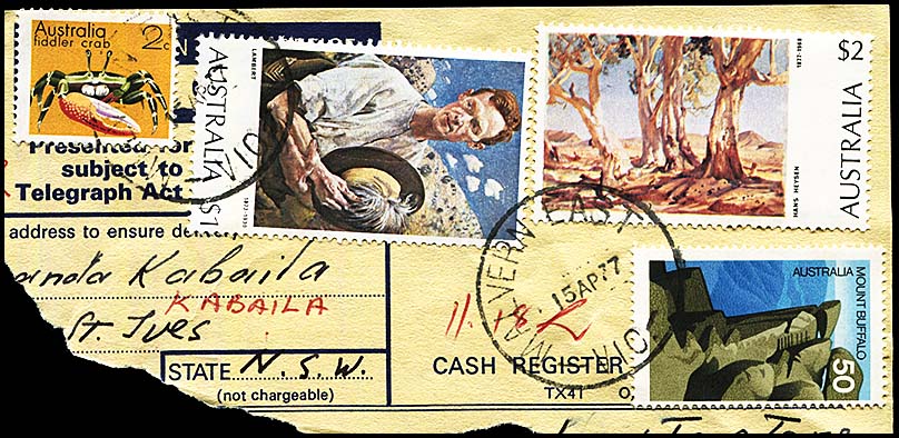 Caulfield East postal date stamp. $3.40 charges paid with stamps on a |