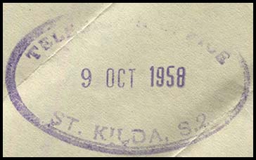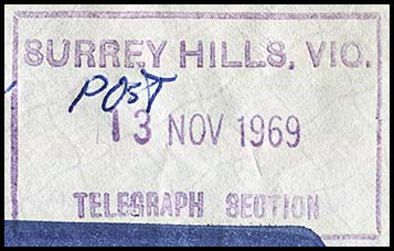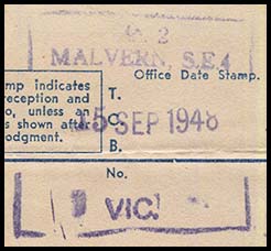 The Office was also issued with a rectangular rubber date stamp (RR1) with the only inscription apart from Malvern SE4 being VIC at the base.