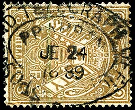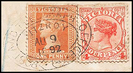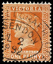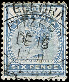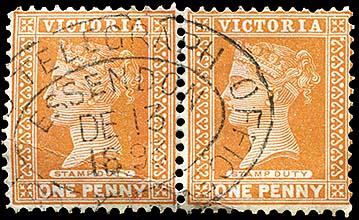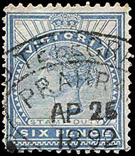 | Scarce usage of a Belt & Buckle date stamp on Stamp Duty stamps. | ![]() 28 September 1892. |