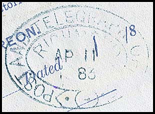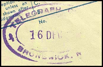 A new discovery unlisted in the main sources including PMI and WWW is a TELEGRAPH OFFICE rectangular rubber date stamp