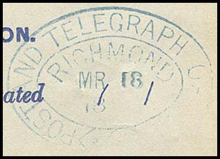 Richmond was issued with three formats of date stamps for use with telegraphic matters: