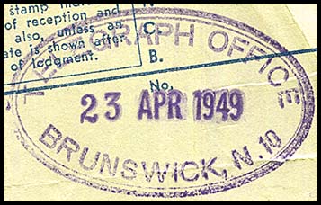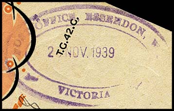![]() Coburg usual Post Office date stamp. 13 September 1939. Used on AB-GB-39. |