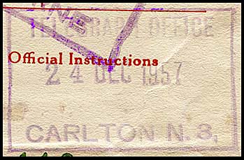 ![]() 24 December 1957. Used on IAO-DO-2 together with the ERD for the Chief Telegraph Office rubber circular date stamp. |