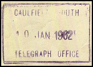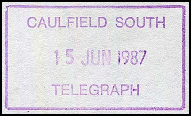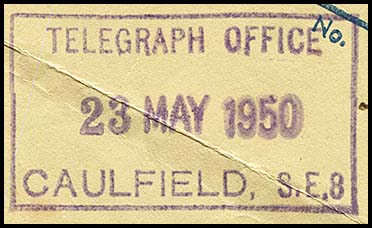 Three rubber oval date TELEGRAPH OFFICE stamps were issued to Caulfield. All formats had CAULFIELD S.E.8 at the base.