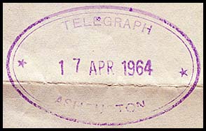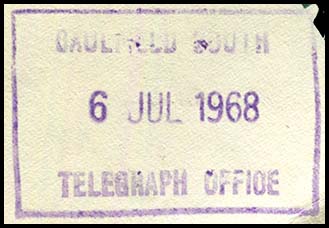 The Telegraph Office was issued with 5 formats of date stamps between 1962 and 1987.