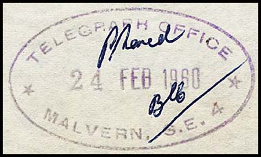 ![]() 24 February 1960. Used on a delivery window envelope. |