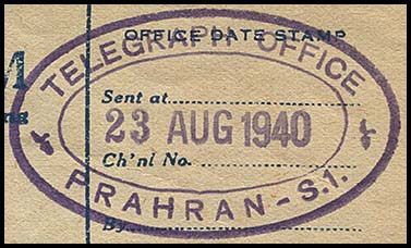 The Telegraph Office was issued with a rubber oval TELEGRAPH SECTION date stamp (RO2 - TS).