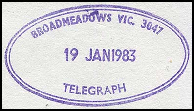 Three other TELEGRAPH date stamps were used at Broadmeadows.