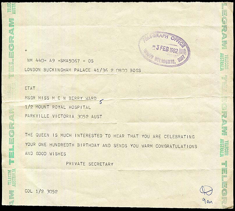 See also Malcolm Fraser for a complement to this telegram from the Queen.. |
