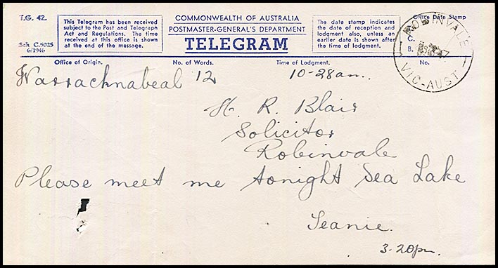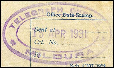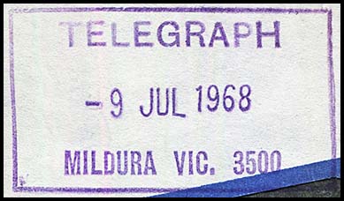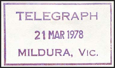 In addition, the usual postal date stamps were used on telegrams: Mildura dup