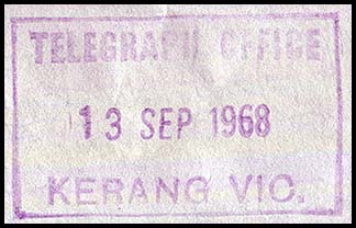 Two formats for date stamps were issued th the Kerang Office for use with telegraphs.
