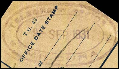 No special date stamp was used for telegrams. Instead the usual Post Office date stamp was used.