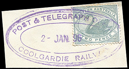 ![]() Coolgardie Railway Post & Telegraph Office. 2 January 1896. Prestige Philately August 2010 Lot 506. |
