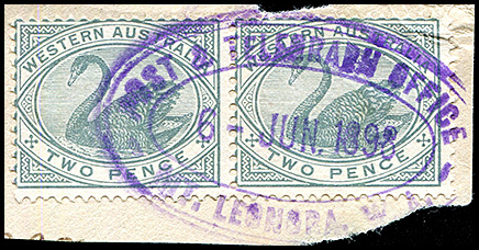 ![]() Coolgardie Railway Post & Telegraph Office. 5 March 1896. Prestige Philately December 2010 Lot 542. |