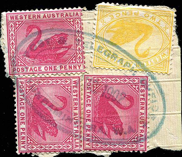 1d and 4d adhesives added on the front. On the reverse side, there is an oval "Registered/Perth, WA" date stamp in blue. |